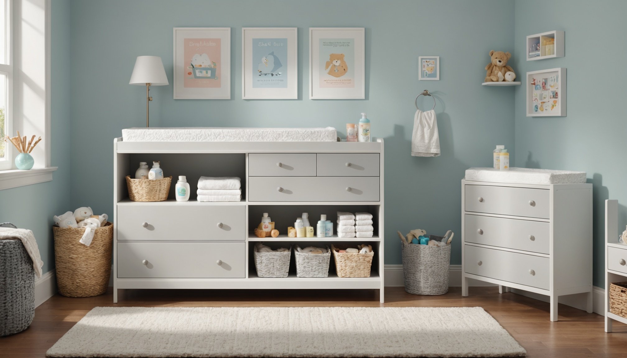 • Rangement : Étagères, tiroirs ou niches permettent de garder produits de soin et couches à portée de main